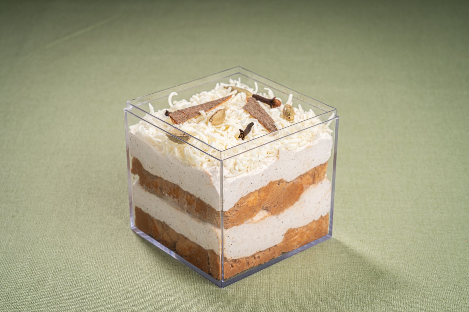 Crisp cardamom rusk soaked in aromatic Indian masala chai, layered with luscious chai-spiced mascarpone cream — a comforting twist on the classic tiramisu infused with the warmth of Indian tea.