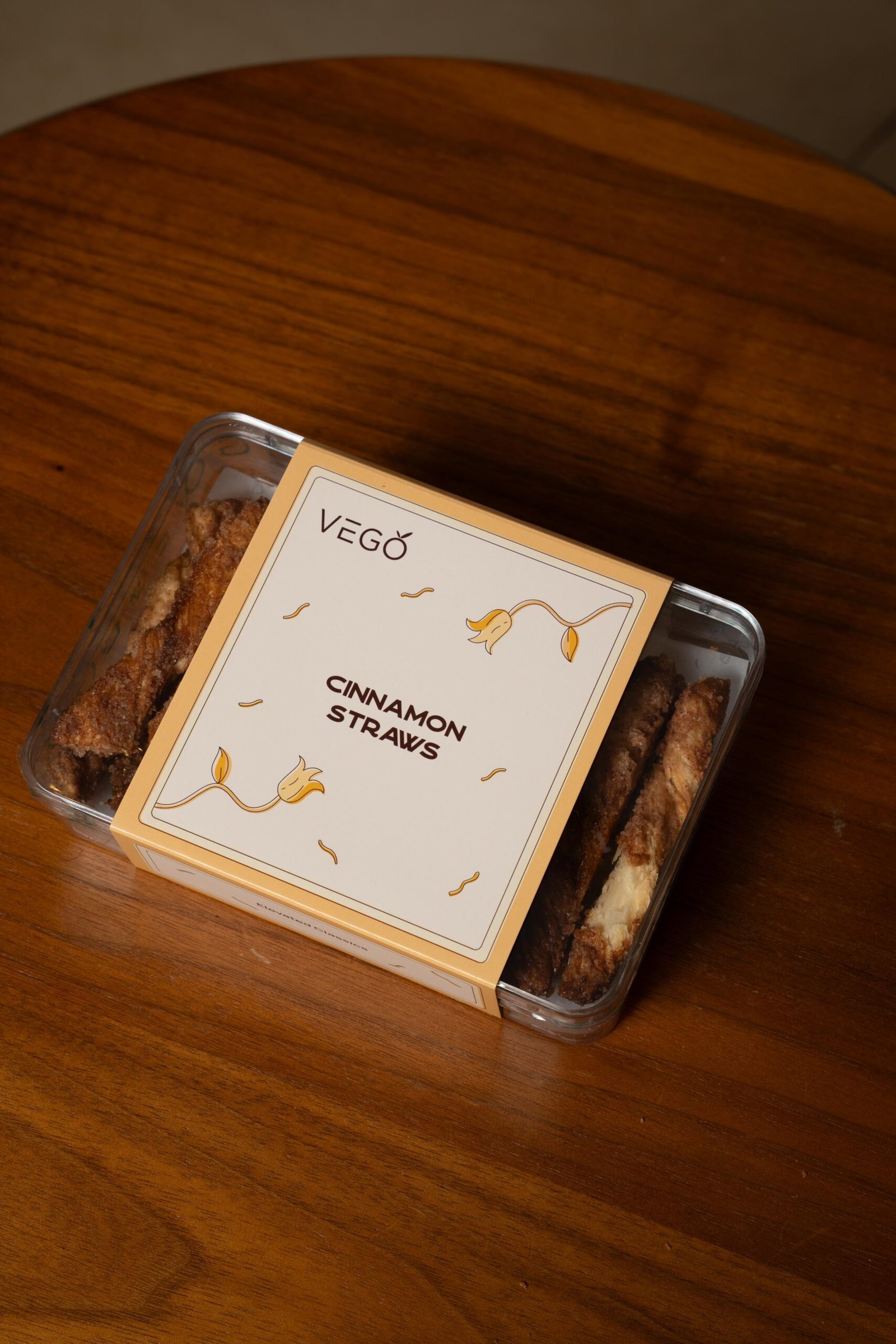 Light and flaky pastry straws dusted with cinnamon and sugar.