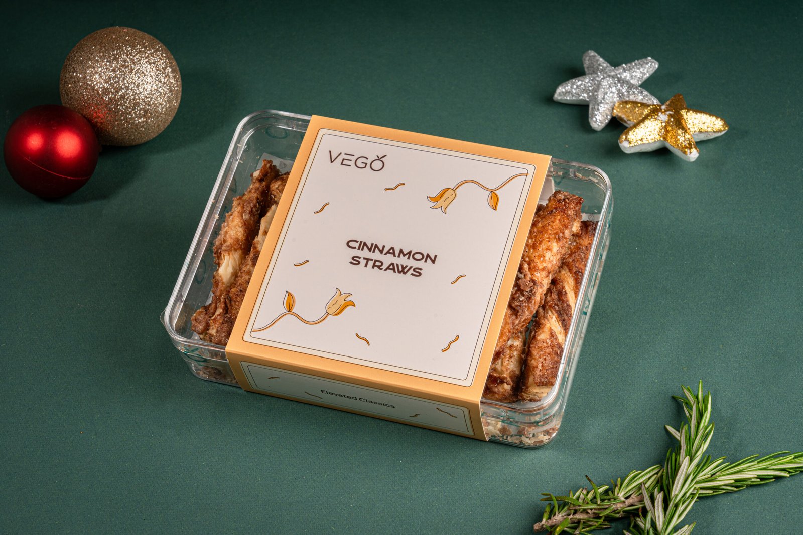 Light and flaky pastry straws dusted with cinnamon and sugar.
