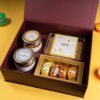 “Indulge in the joy of the season with our Festive Fun Box, featuring golden, flaky gujiyas, savory and crisp mathris, aromatic thandai biscotti, and perfectly roasted almonds — a delightful mix of traditional flavors and festive treats to share and savor.”