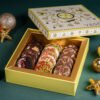 “Festive coin-shaped chocolates crafted in unique flavour pairings such as pretzel & sesame, matcha pistachio,cinnamon almond, raspberry oreo, frosties & peanut, hazelnut & cacao nibs,