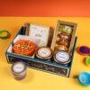 “A charming assortment of festive delights with Premium Mini Hamper Box features 4 classic Gujiyas, 5 crisp Gheeyars, aromatic Thandai biscotti, zesty Rose Salt & Pepper almonds, savory Fennel & Jeera Mathri, and colorful treats to brighten every celebration. Perfectly curated for sharing joy, flavor, and the spirit of the season in every bite.”