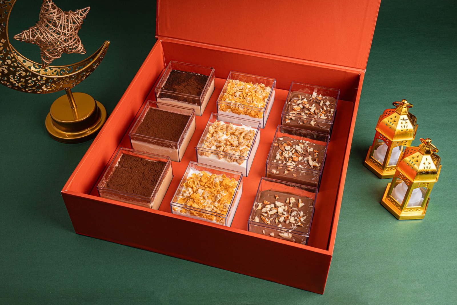 Nine indulgent treats(Labneh Crunch, Dark Chocolate And Lotus) brought together in one thoughtfully crafted box.