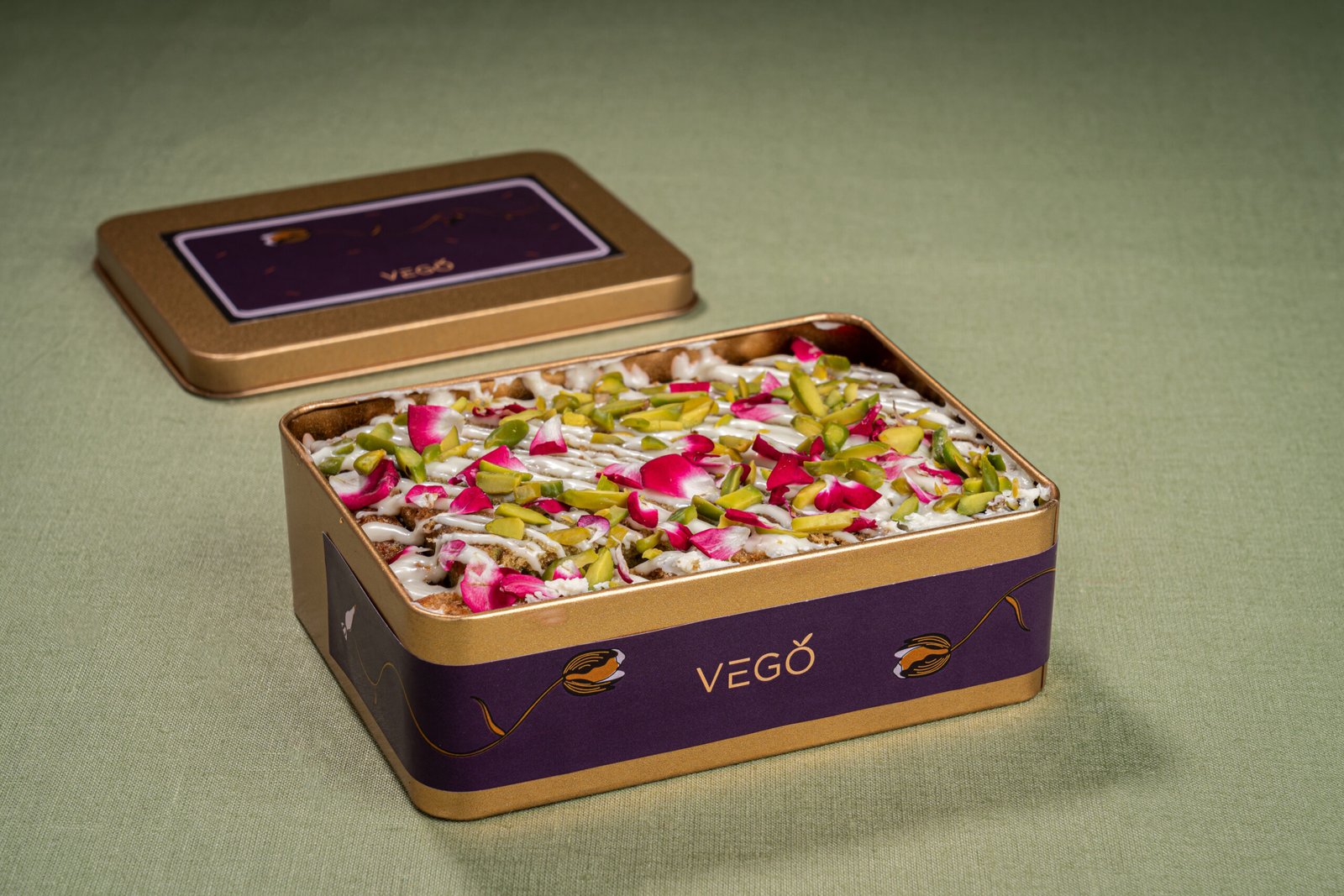 Rose infused tea cake enriched with crunchy pistachios, offering a perfect blend of floral aroma and nutty elegance.
