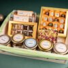 A signature christmas hamper that defines holiday perfection. – Truffles Box of 16 , Brownie Box Of 8 , Chocolate Nutella Pound Cake , Coconut Cardamom Biscotti , Cinnamon Straw , Chocolate Chip Cookie , Maple Rosemary Cashew , Millet Crackers , Pesto Crostini , Sesame Pistachio Cookie