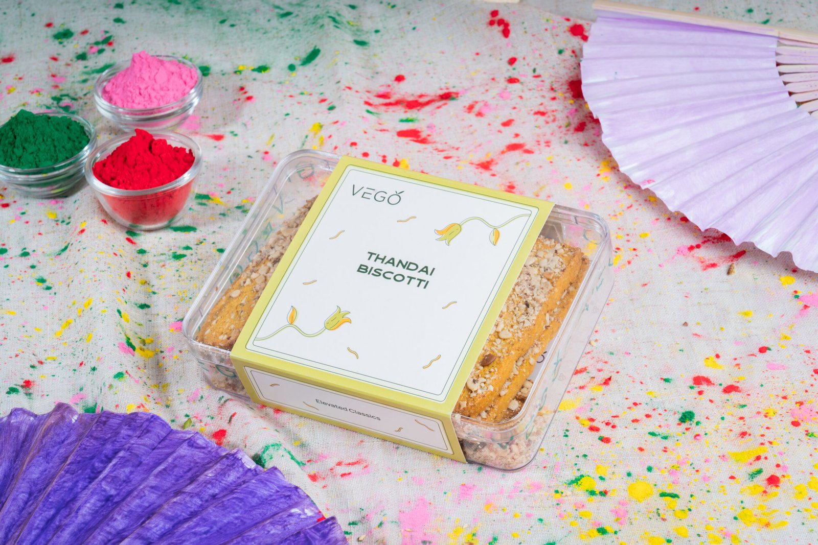 Crunchy, nutty biscotti infused with saffron, cardamom, and thandai spices
